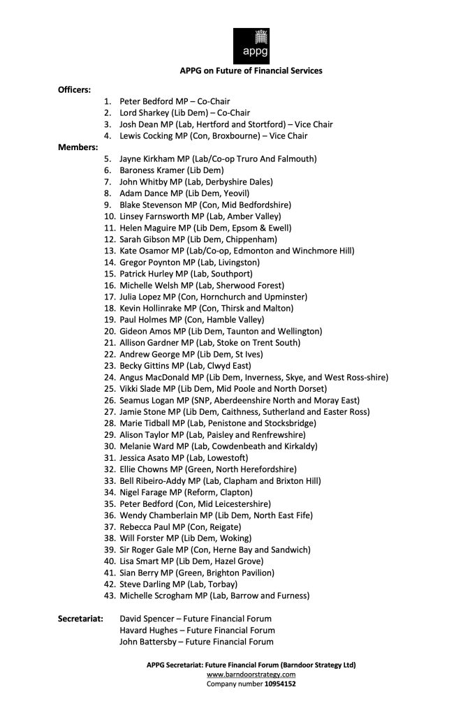 The FFS APPG was a cross-party parliamentary group which allowed MPs and Peers from all political backgrounds to understand the UK financial services sector and key financial services issues better, engage with the sector, and consider policy and reforms to help shape the future of Financial Services in the UK.